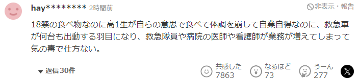 上の画像はYahoo!コメントを貼り付けたものですが、他にも救急車を今回の件で呼ぶことに反対している意見もあったりと、