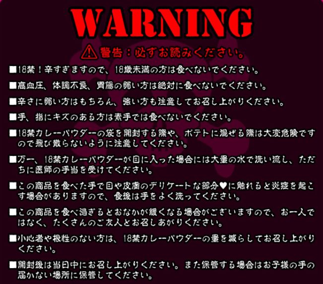 付属の激辛パウダーを、かけるみたいなんですがパウダーがほんのちょっと指についただけで、その指がものすごくヒリヒリするそうです。