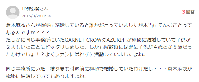 ただ一部では、過去に倉木麻衣さん本人が「結婚はしている」と話していたことから、極秘結婚をしているのではないのかという意見もあります。