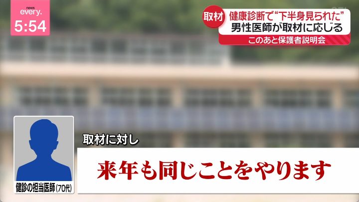 低学年から順番に実施された健康診断で、学校の教師が補助に入っていたそうですが、下着を引っ張って視診する内容は去年はなかったため、大山健司医師に下腹部の視診の目的を尋ねたが、