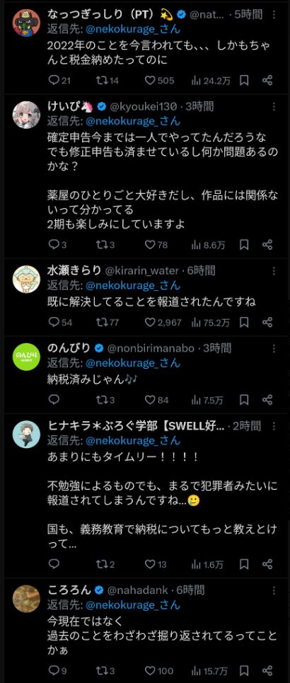 関係者の話によると、ねこクラゲさんは多額の所得を得ていることが想定されていたにも関わらず、申告がなかったため捜査の対象になっていたのではないかと話していたそうです。