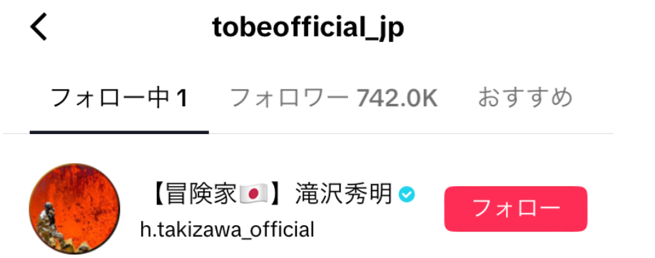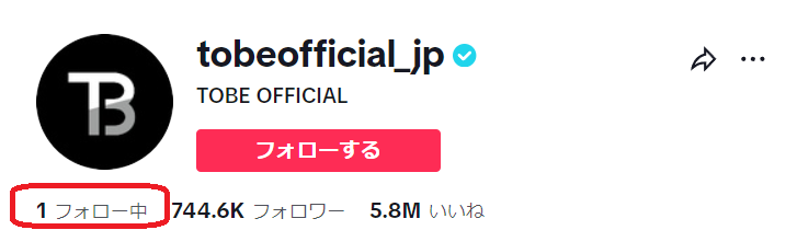 そのTOBEがフォローしているのは1アカウントのみです。