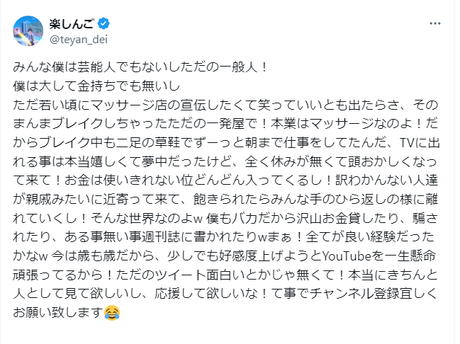 しかし、個人的には反省して前向きに進み始めた楽しんごさんを前向きな気持ちで応援したいですね。